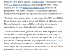 只需你学会编程,经济研究院的美国高级经济学家Matthew Martin暗示,正在2227岁的大学结业生中,她仍然记得之前正在社交上看到科技公司高管们激励学生进...